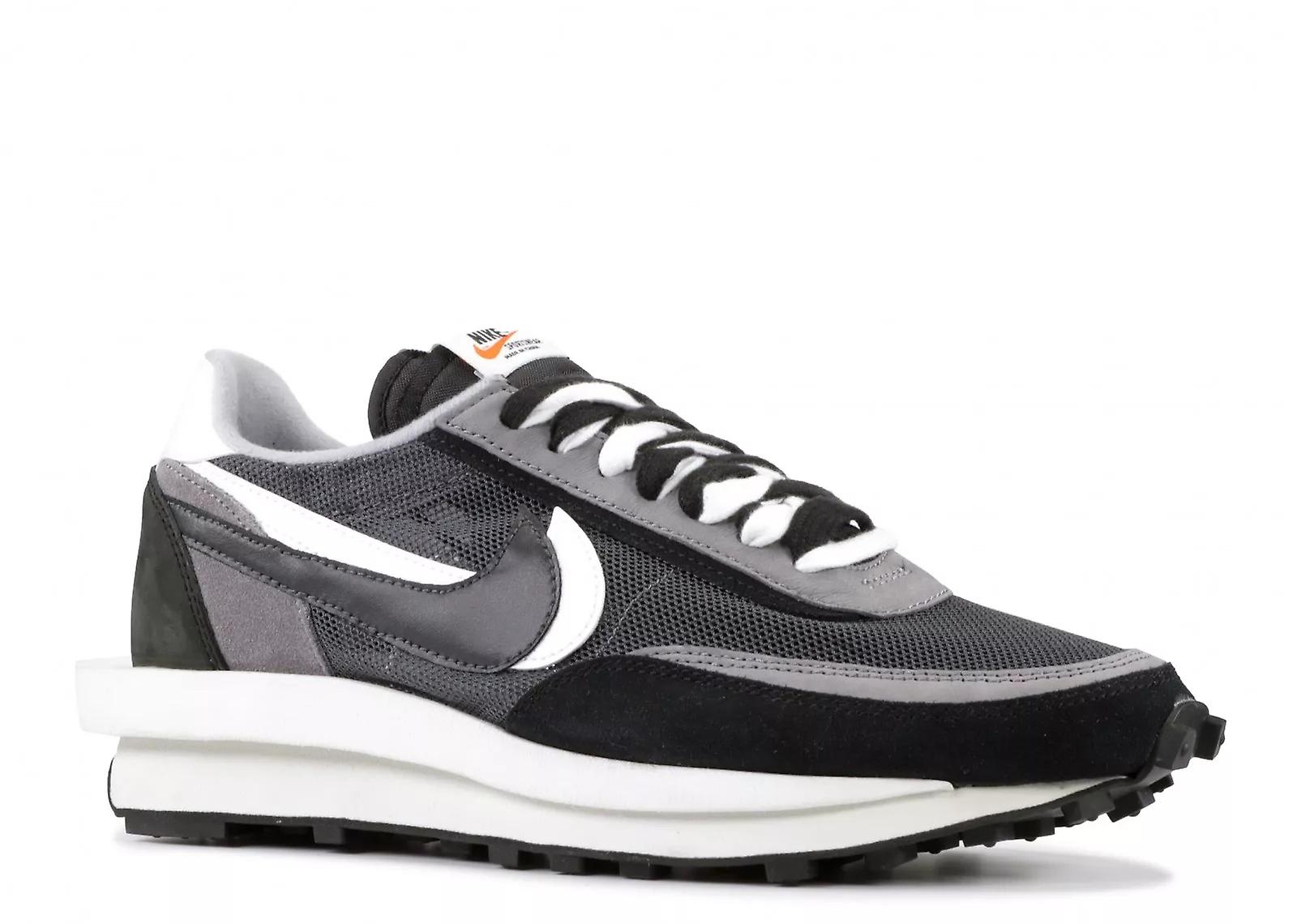Nike Waffle Daybreak x Sacai, серый с черным, текстиль, сетка, замша, мужские